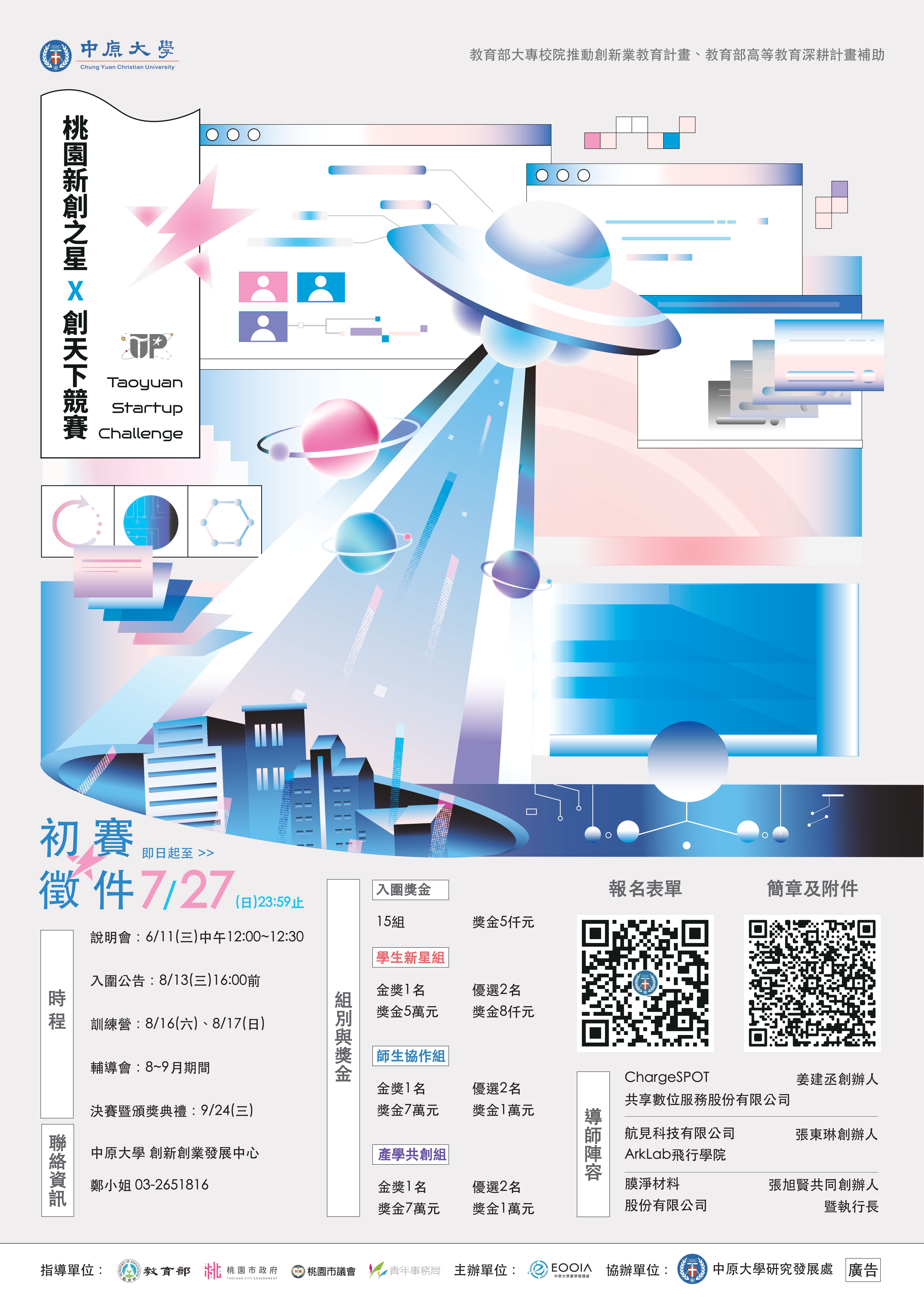 轉知【2025桃園新創之星x創天下競賽】 2025-06-12 最新消息 / 獎助學金 https://ib.cycu.edu.tw/wp-content/uploads/2025桃園新創之星x創天下_徵件海報.pdf https://ib.cycu.edu.tw/wp-content/uploads/2025桃園新創之星x創天下_競賽簡章.pdf You Might Also Like 國際經營與貿易學系學生修課須知 2024-07-08 113學年度學系簡介暨申請入學指定項目甄試相關公告 2024-03-14 【轉公告】外貿協會「113年度ITI國際企業經營班(國企班)」招生中,即日起至113年4月8日止 2024-03-08