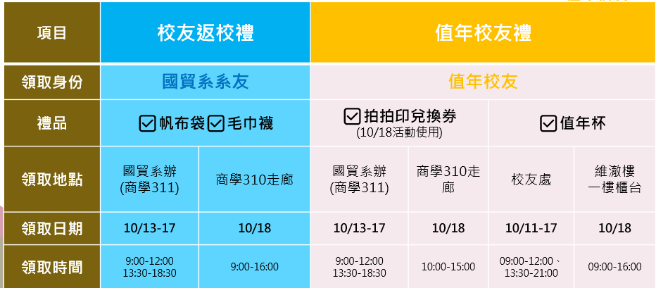 邀請您一起回到熟悉的校園,和師長、同學們相聚,分享彼此的故事與點滴,現場刺激抽獎,共同見證國貿系的成長與精彩。