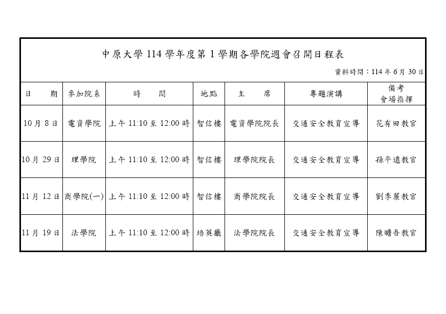 【114學年度第1學期各學院週會召開日程表】 2025-08-12 最新消息 / 系辦公告 You Might Also Like 2024高中生大學學系學涯、職涯、生涯體驗營! 2024-03-04 【職訊轉PO】台新金控-2024年 Early Win 職場體驗計畫(一年期)開始甄選囉! 2024-03-25 本校學士班學生申請113學年度第2學期自主設計跨領域專長作業事宜 2024-09-25