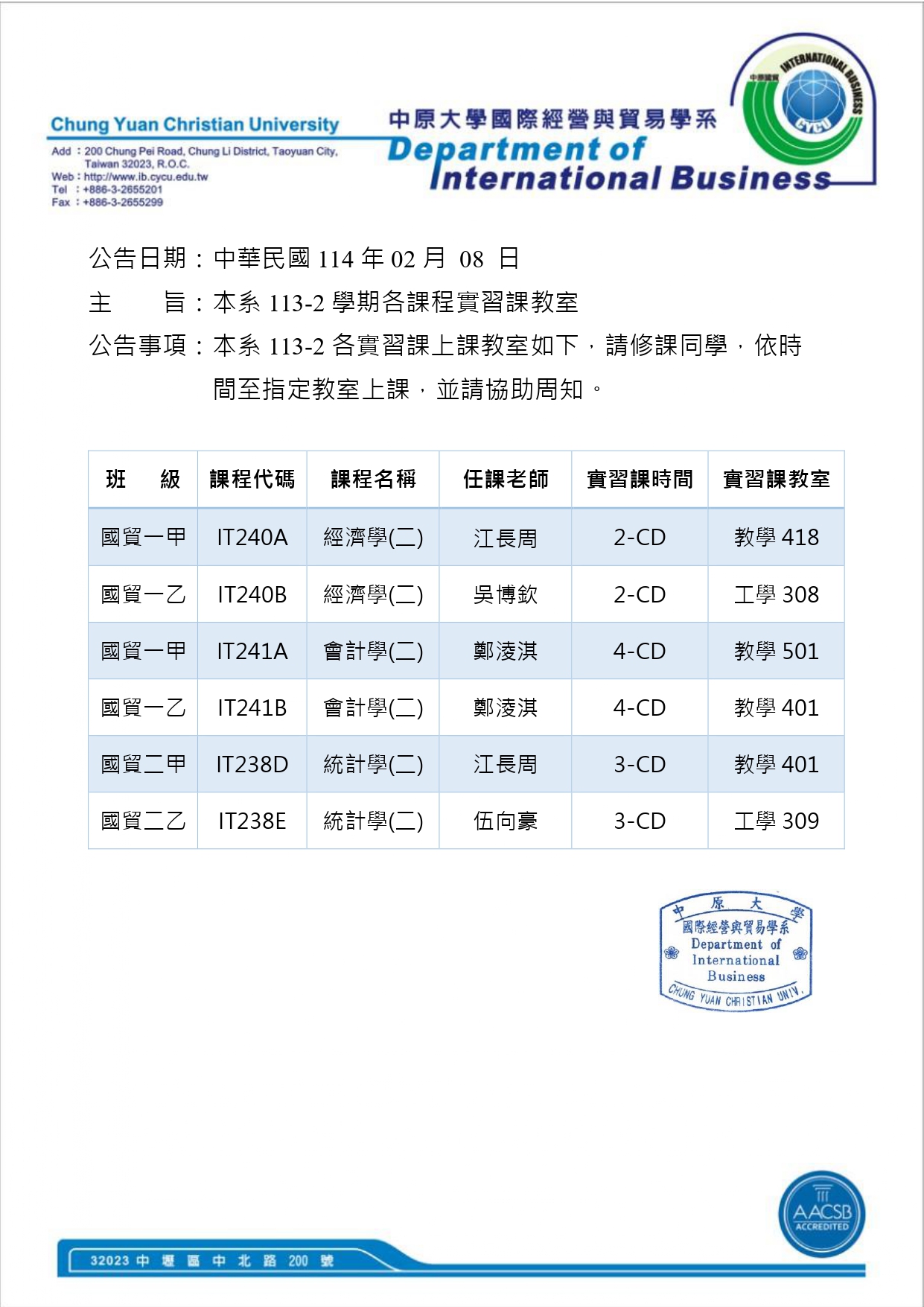[公告]113-2學期國貿系實習課教室 2025-02-10 大學部 / 最新消息 / 系辦公告 You Might Also Like 【職訊轉PO】台新金控_2024年 Early Win 職場體驗計畫(半年期)開始甄選囉! 2023-10-02 【職訊轉PO】玉山銀行理財專員/金融服務人員/個金AO徵才 2024-05-14 112學年度第1學期校際選課作業事宜 2023-06-09