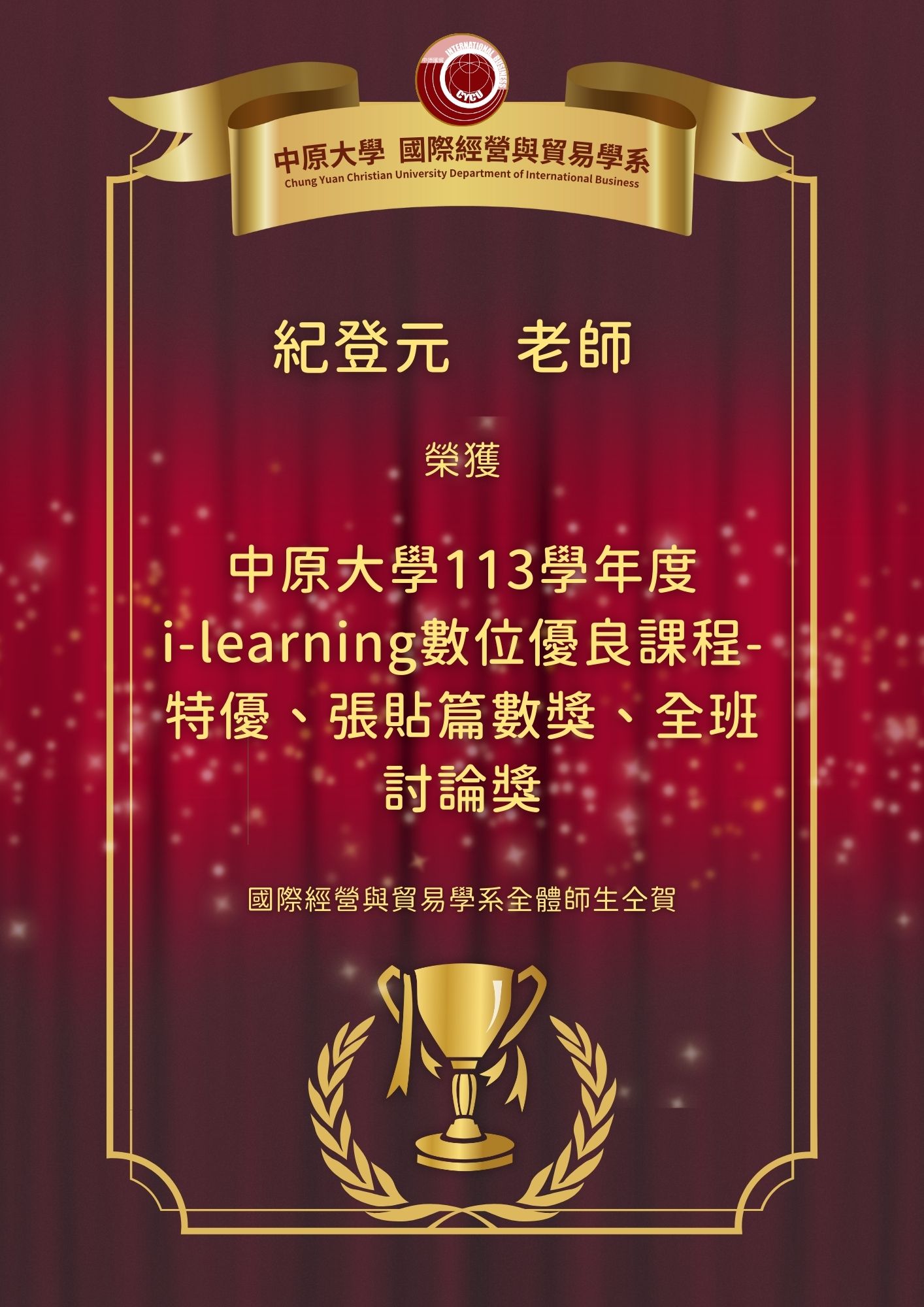 賀!本系紀登元老師獲本校113學年度i-learning數位優良課程選拔榮獲佳績! 2025-09-12 最新消息 / 榮耀與報導 You Might Also Like 轉知商學院-學生自主學習好康申請機會~超棒自學英文機會,千萬別錯過!! 2024-05-17 【暑假讓你出國去】海外志工百百款,究竟要選哪一款? 2023-03-09 【114-1國貿系線上表單選課須知】 2025-07-10