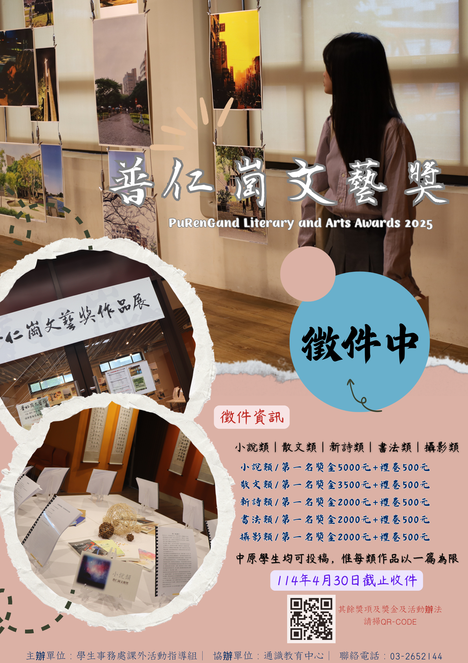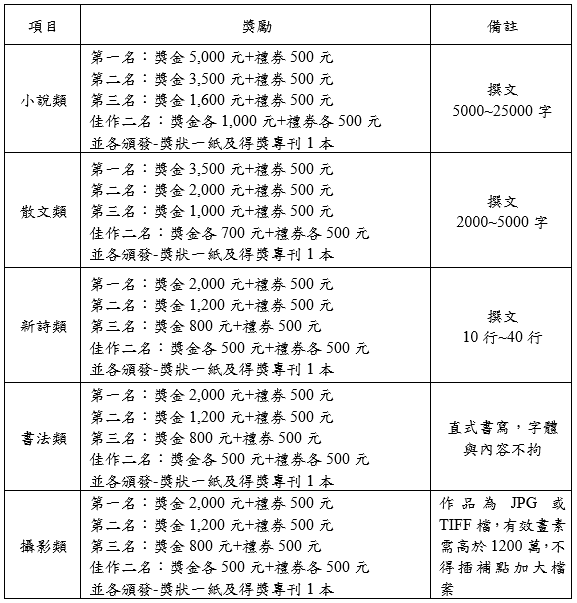 轉知【114年普仁崗文藝獎】報名即將截止! 2025-04-17 最新消息 / 活動資訊 114年普仁崗文藝獎將於4月30日報名截止囉,還沒有參加的同學,要把握機會哦。 徵稿資訊: You Might Also Like 轉知【國際處將於10月29日舉辦「日本關西大學留學講座」】 2025-10-16 考選部辦理112年「預備文官團-離島文官領航隊」,歡迎有興趣同學踴躍報名參加 2023-06-07 商學院 EMI-English Chatroom活動 2023-11-16